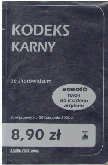 Kodeks karny ze skorowidzem / [red. Izabela Ratusińska, Dagmara Wachna]. - Wyd. 4, stan prawny na 20 listopada 2005 r. - Kraków : Zakamycze, 2005. - 391, [1] s. ; 15 cm.