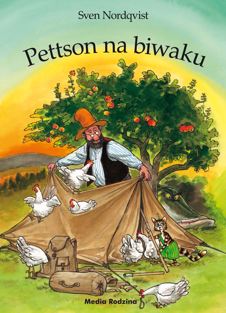 Pettson i Findus znaleźli na strychu namiot i zapragnęli urządzić sobie biwak na rzeką, a przy okazji złowić trochę ryb. Jednak nie udało im się wyjść z domu, bo wszystkie kury także chciały iść nad rzekę. Wobec tego namiot został rozbity w ogrodzie. Sąsiad Gustavsson znowu miał się czemu dziwić... [https://platon.com.pl/pl/pettson-na-biwaku-pettson-i-findus/produkt-1071176884]