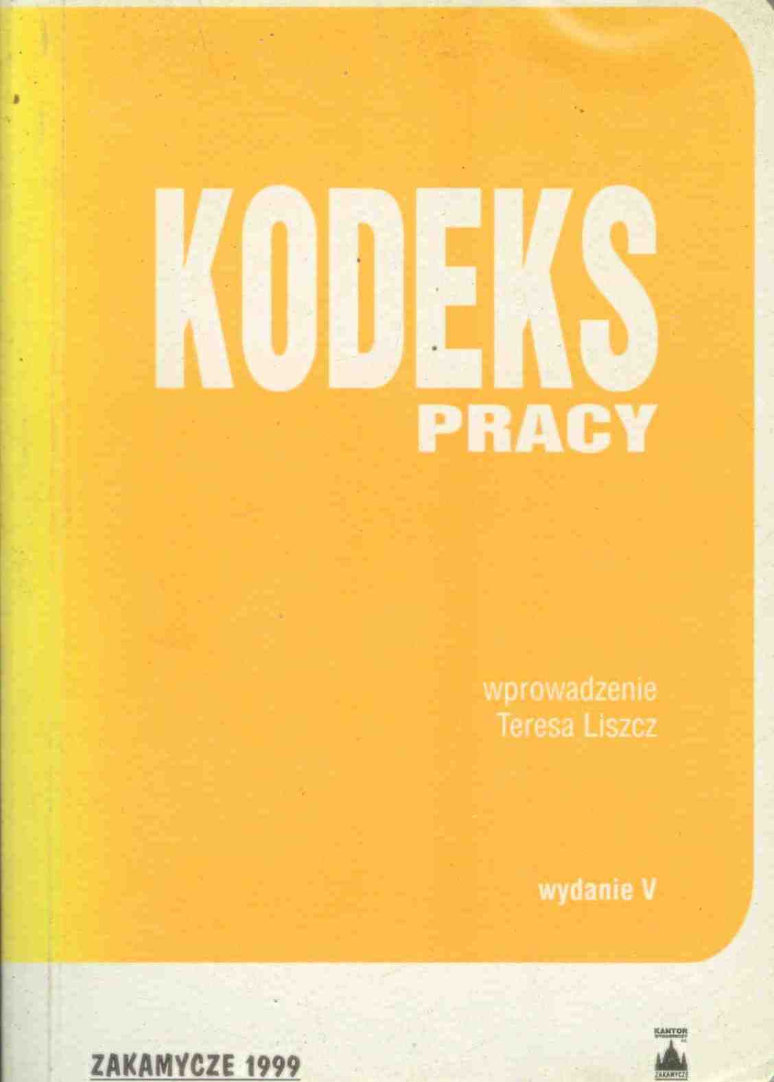 Kodeks pracy / wprowadzenie Teresa Liszcz. - Wyd. 5 dodr., stan prawny na 1 marca 1999 r. - Kraków : Zakamycze, 1999. - 348, [1] s. ; 15 cm.